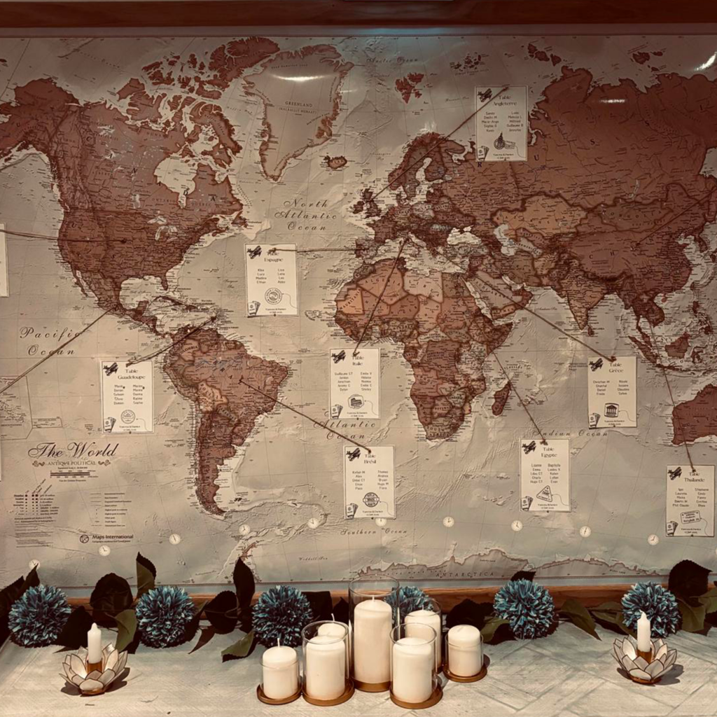 - un plan de table sous forme de carte du monde
