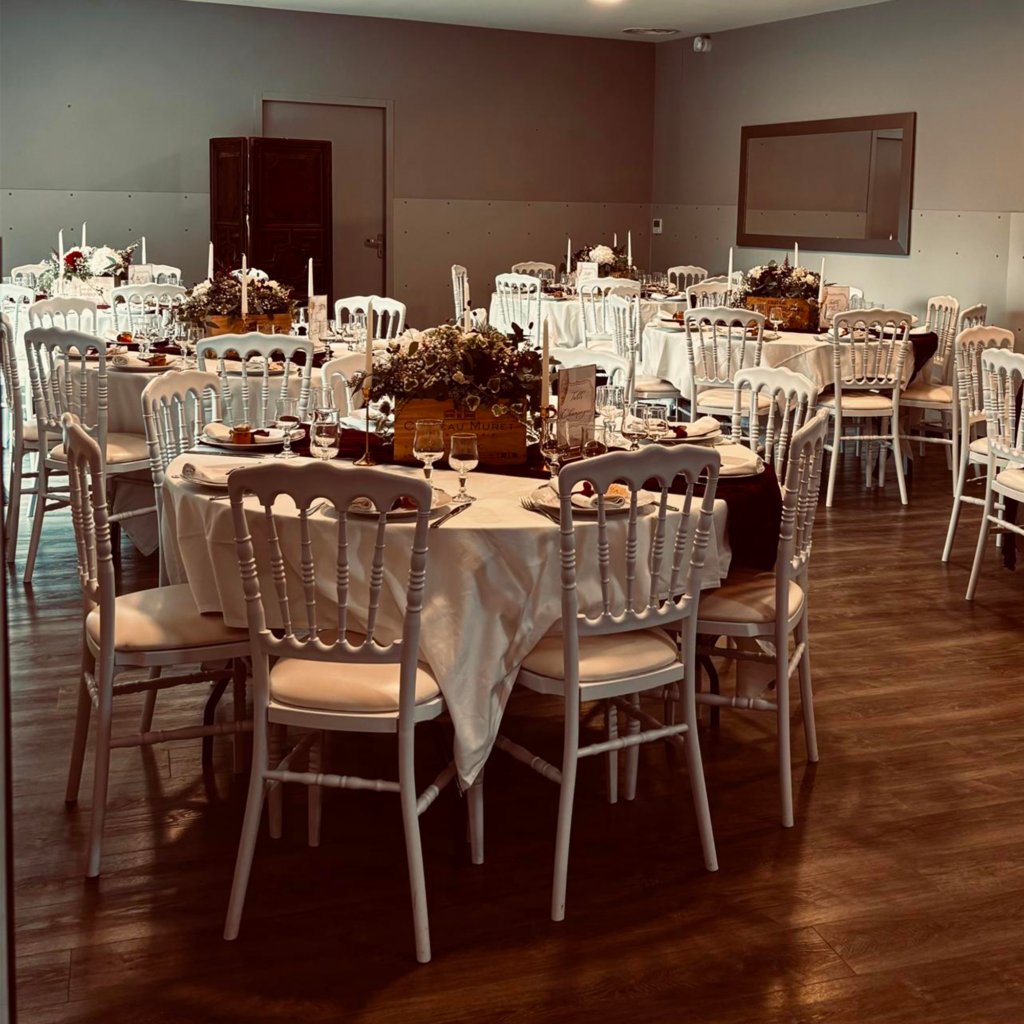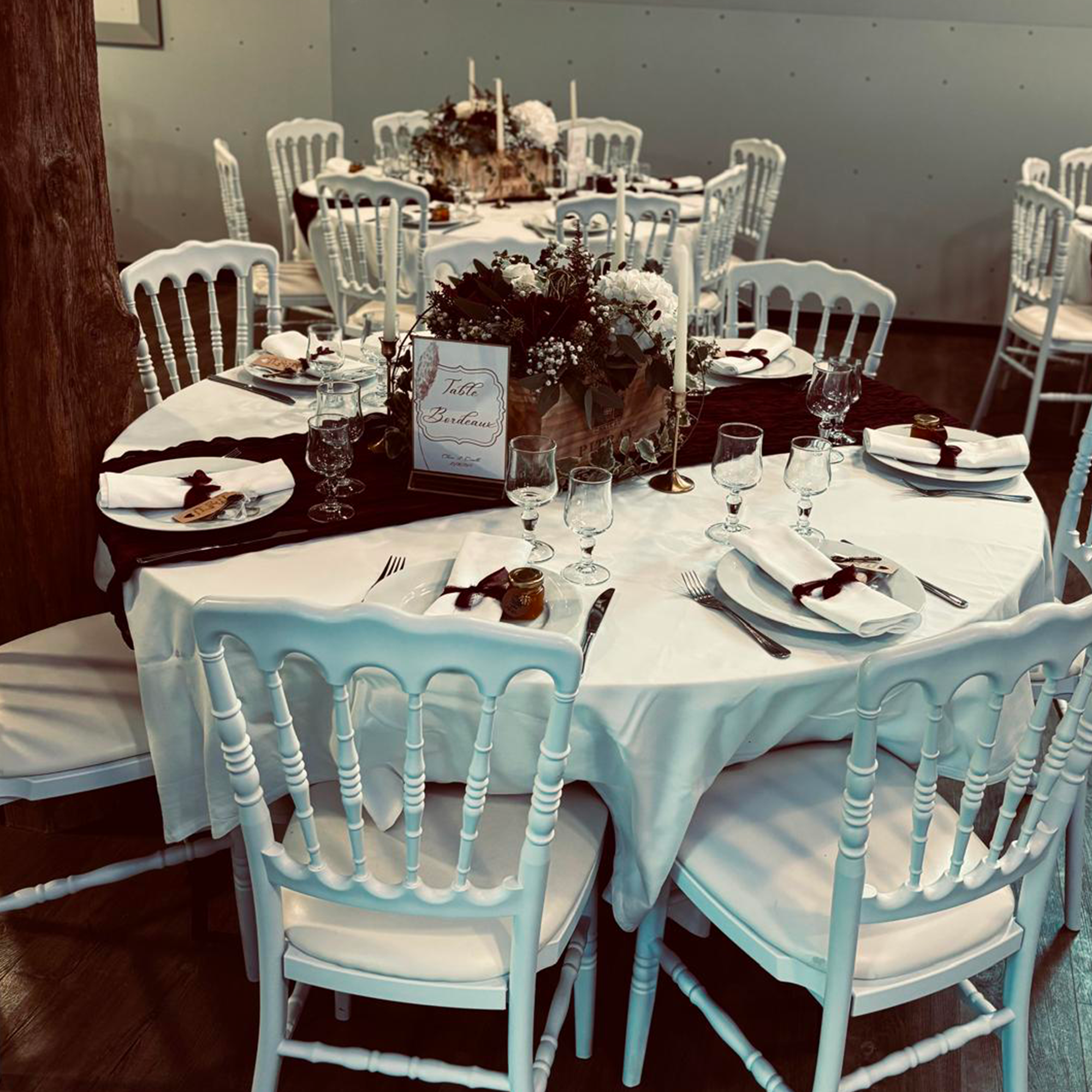L’ensemble créait une atmosphère à la fois chic et conviviale, parfaite pour un repas de mariage.