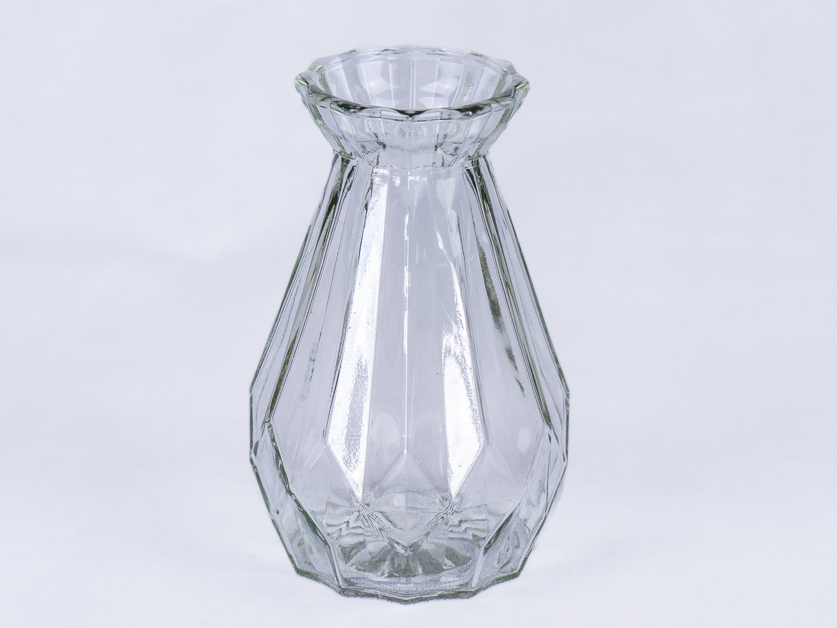 Vase en verre facetté, son design élégant capte la lumière et sublime vos compositions florales pour un décor chic et moderne.